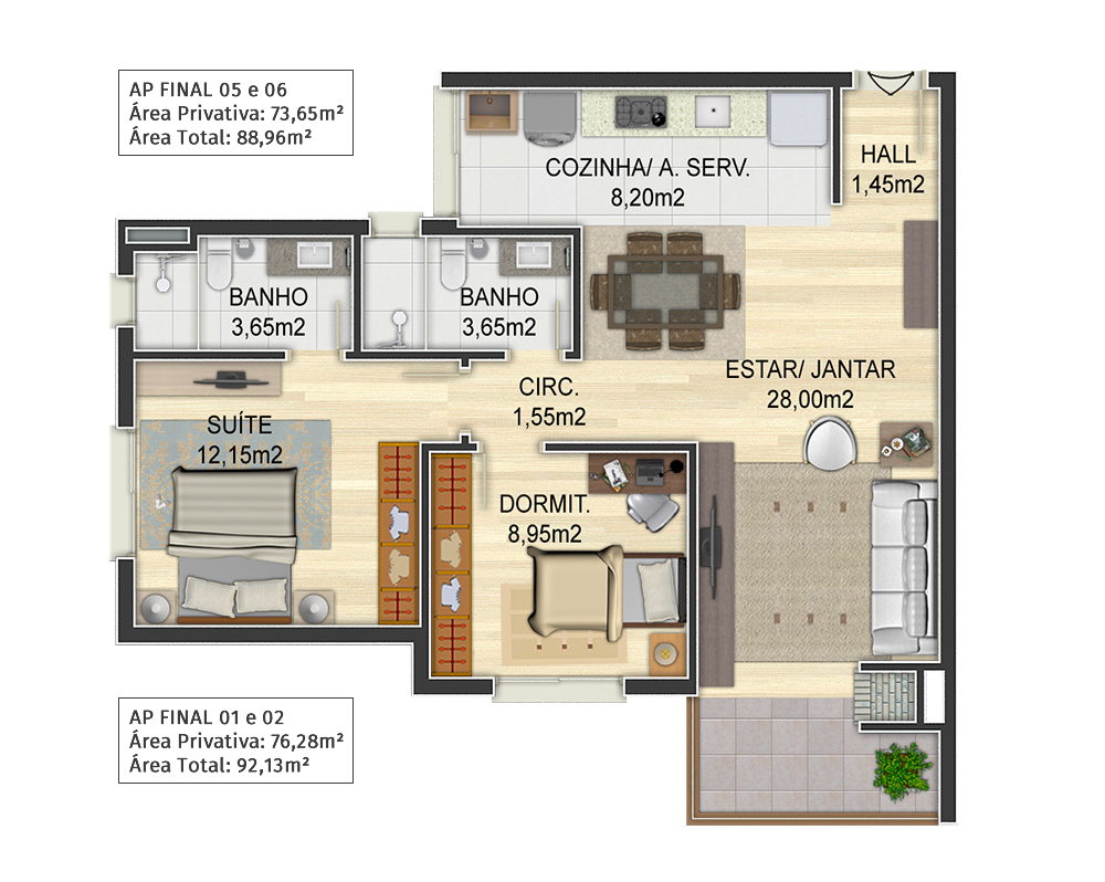 * as plantas e ilustrações artísticas presentes nas fotos apresentam mera sugestão de decoração que não fazem parte do contrato